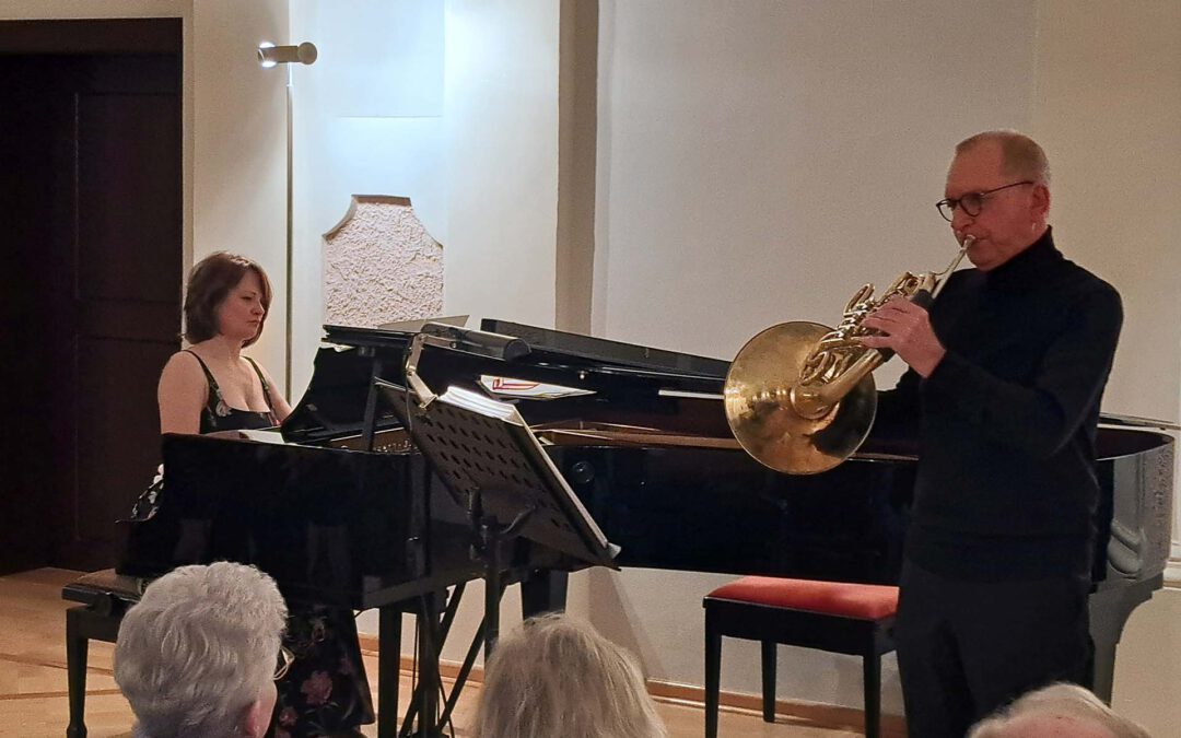 Wie beim Auftaktkonzert war auch der zweite Abend der Konzertreihe 2025 frühzeitig ausverkauft – zur Freude der Verantwortlichen um WKK-Vorsitzenden Andreas Sagstetter. Klaus Wallendorf, Mitglied von „German Brass“ und über viele Jahre Hornist bei den Berliner Philharmonikern, und Irina Loskova am Flügel gaben eine amüsante Vorstellung mit vielen bekannten Melodien..